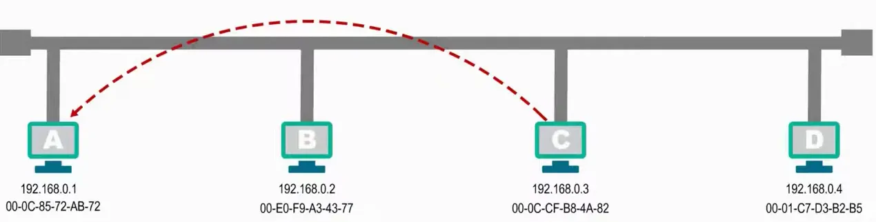 bcd都会收到该单播响应,但是db发现目的mac地址不是自己就直接丢弃。c收到后添加到ARP高速缓存中。
